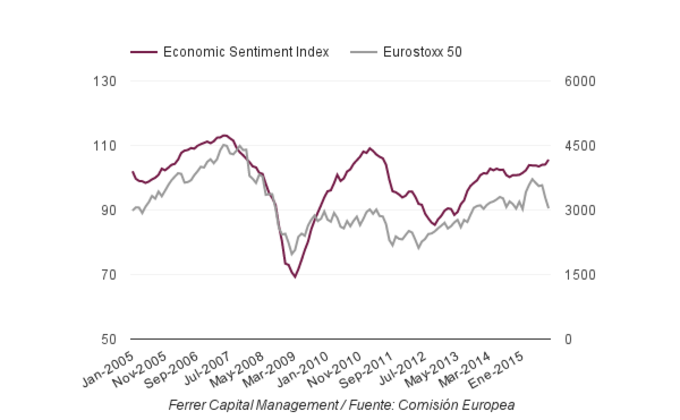 Eurozona: Índice Sentimiento Económico alcanza nuevo máximo cíclico, 105,6 en septiembre El índice de sentimiento económico de la Eurozona, ascendió un punto y medio hasta los 105,6 en este mes de septiembre. Se trata de la cifra más elevada de la actual... 29 de septiembre, 2015