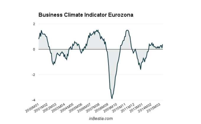Eurozona: Business Climate Indicator 0,4 Julio Según Eurostat, el Business Climate Indicator, la encuesta realizada sobre la situación del sector industrial en la Eurozona, ascendió en julio hasta los 0,4 puntos en un... 30 de julio, 2015
