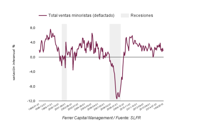 EEUU: ventas minoristas crecen el 0,6% en julio Las ventas al por menor crecieron 6 décimas en julio con respecto a junio de este año. En términos interanuales el crecimiento sigue siendo claramente positivo, aunque al... 13 de agosto, 2015
