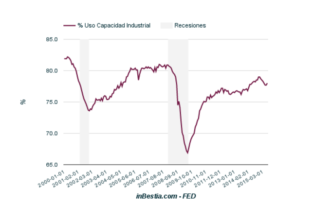 EEUU: el uso de la capacidad industrial aumenta hasta el 78% El uso de total de la capacidad industrial de los Estados Unidos aumentó tres décimas en julio hasta el 78%. Se trata del primer aumento del uso total desde el máximo... 14 de agosto, 2015