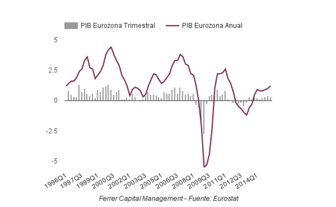 Eurozona: el productor interior bruto crece el 1,2% anual El producto interior bruto de la Eurozona (EA19), creció tres décimas en el segundo trimestre del año con respecto al primero. El crecimiento de los últimos cuatro... 14 de agosto, 2015