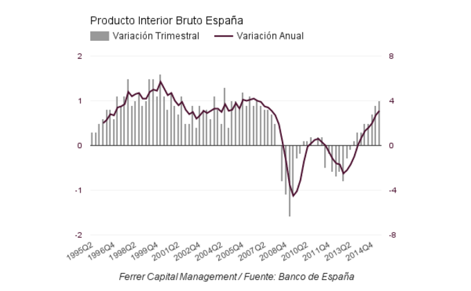 España: PIB segundo trimestre crece al ritmo más fuerte de 9 años El productor interior bruto español creció en el segundo trimestre de 2015 un 1% sobre el primer trimestre del año, en lo que es la cifra trimestral más fuerte desde... 30 de julio, 2015