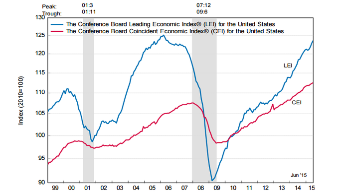EEUU: Indicador Líder aumentó un 0,6% hasta los 123.6 puntos El indicador adelantado de la actividad económica de los Estados Unidos elaborado por The Conference Board, aumentó 6 décimas en junio con respecto a mayo hasta los 123,6... 23 de julio, 2015