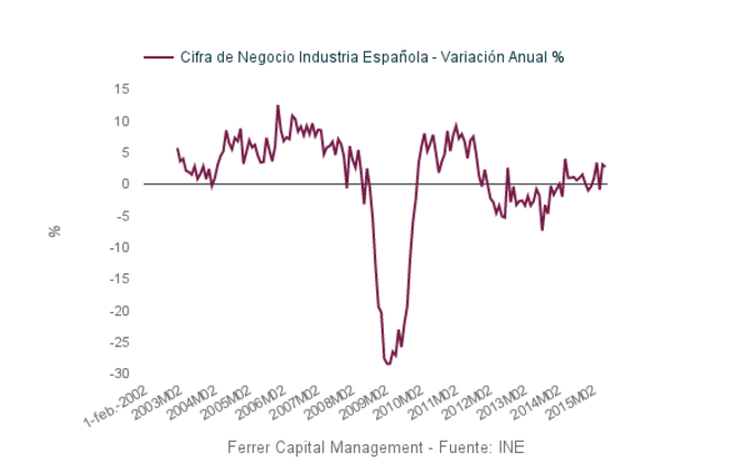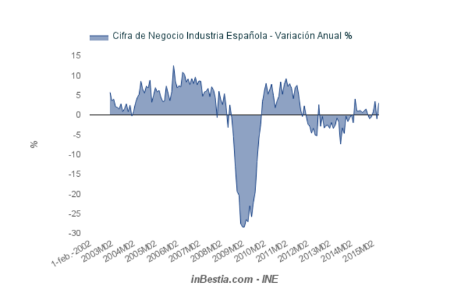 España: cifra negocio industrial aumenta 1,9% en mayo La cifra de negocio del sector industrial español repuntó un 1,9% en el mes de mayo con respecto a abril. En los últimos 12 meses, la cifra de negocio aumenta a una tasa... 17 de julio, 2015