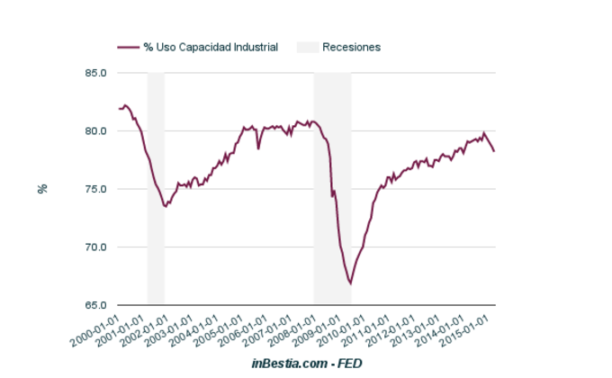 EEUU: Uso Capacidad Industrial 78,2% en Abril El uso del total de la capacidad industrial de la economía norteamericana siguió declinando en abril hasta el 78,2% desde el 78,6% del mes anterior. El máximo del actual... 15 de mayo, 2015