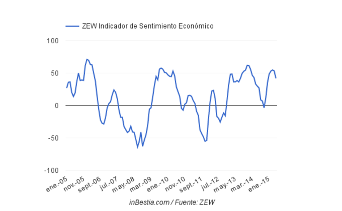 Alemania: ZEW 41,9 puntos Abril El indicador ZEW de confianza en la economía germana (realizada entre 350 expertos) declina por segundo mes consecutivo hasta los 41,9 puntos.A pesar del... 19 de mayo, 2015
