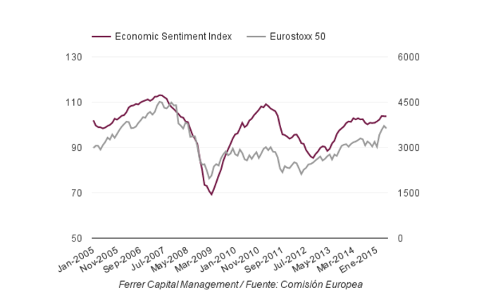 Eurozona: Índice Sentimiento Económico 103,8 Mayo Según datos difundidos hoy por Eurostat, la agencia estadística de la Comisión Europea, el índice de sentimiento económico de la Eurozona, una encuesta realizada a... 28 de mayo, 2015