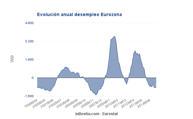 Eurozona: 130.000 personas salen de las listas del paro El número de desempleados en la Eurozona se redujo en 130.000 personas durante el mes de abril con respecto al mes anterior. 3 de junio, 2015