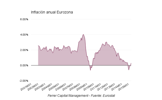 Eurozona: La inflación repunta hasta el 0,3% anual La inflación anual en la eurozona sale del terreno negativo y neutral para repuntar hasta el 0,3%, el nivel más elevado desde noviembre de 2014. 2 de junio, 2015