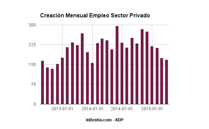 EEUU: +169.000 empleos en Abril Durante el mes de abril se crearon 169.000 empleos en el sector privado estadounidense, una cifra ligeramente inferior a la del mes de marzo (175.000) y la más débil de... 6 de mayo, 2015