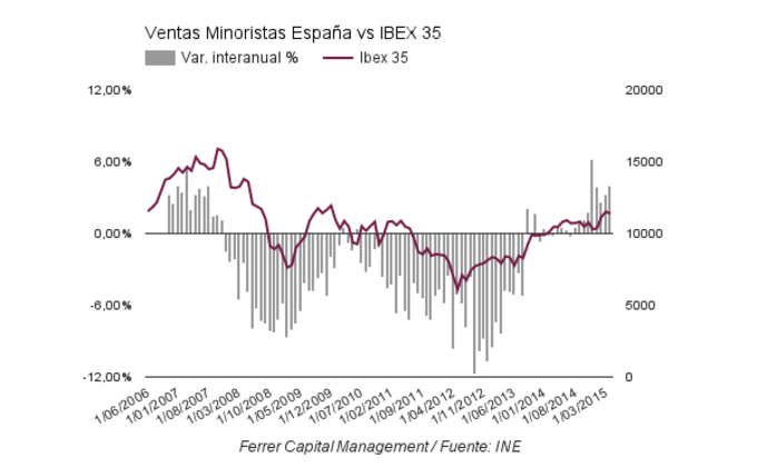 España: Ventas Minoristas +1,3% Abril Las ventas al por menor, según el índice de comercio minorista elaborado por el Instituto Nacional de Estadística, aumentarón un 1,3% en abril con respecto a marzo de... 28 de mayo, 2015