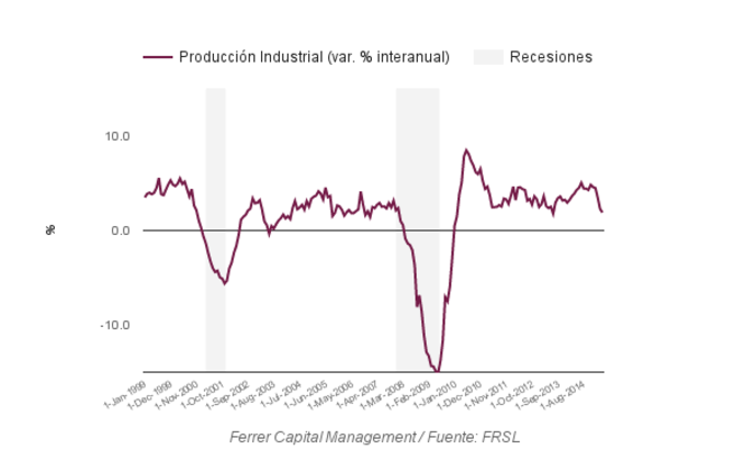 España: Producción Industrial +1% La producción industrial española repuntó un 1% entre marzo y febrero de este año. La evolución interanual muestra un crecimiento acelerado que alcanza el 2,87%, la... 8 de mayo, 2015
