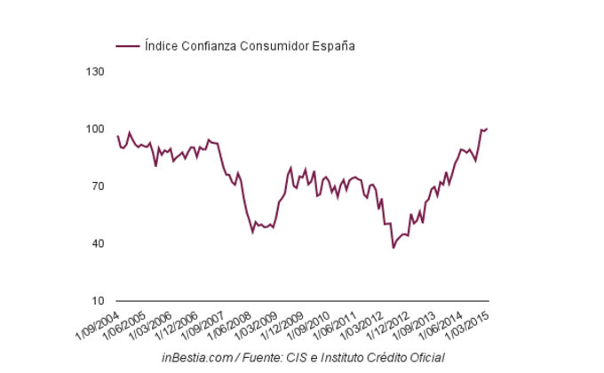 España: El índice de confianza al consumidor alcanza los 100,4 puntos El índice elaborado por el Centro de Investigaciones Sociológicas y el Instituto de Crédito Oficial sobre la confianza del consumidor ha alcanzado un nuevo máximo con... 15 de abril, 2015