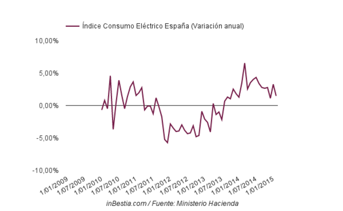 España: El consumo eléctrico crece el 1,49% anual hasta febrero El índice de consumo eléctrico de los grandes consumidores alcanzó los 102,3 puntos en febrero, una cifra un 1,49% mayor que la del mismo mes de 2014.Se trata del... 15 de abril, 2015