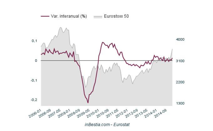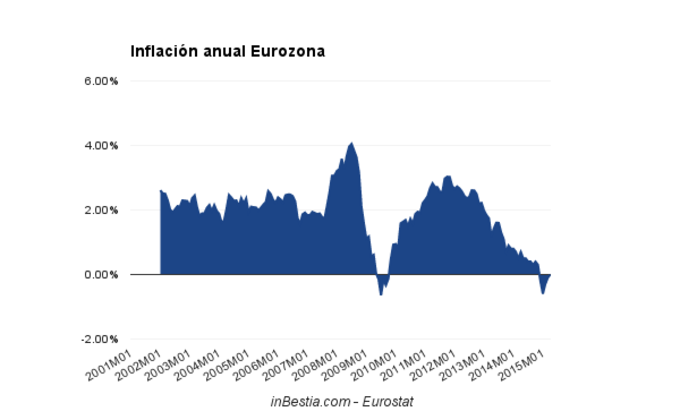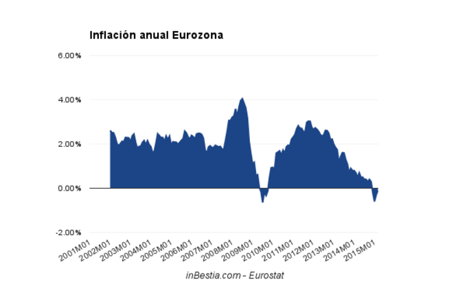 Eurozona: Inflación anual -0,1% La inflación negativa en la Eurozona se moderó en marzo hasta el -0,1% cuando en febrero fue del -0,3% y en enero del -0,6%. 17 de abril, 2015