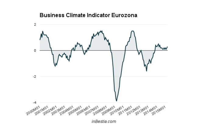 Eurozona: Business Climate Indicator 0,3 Abril Según Eurostat, el Business Climate Indicator, la encuesta realizada sobre la situación del sector manufacturero en la Eurozona, se incrementó en abril hasta el 0,3... 29 de abril, 2015