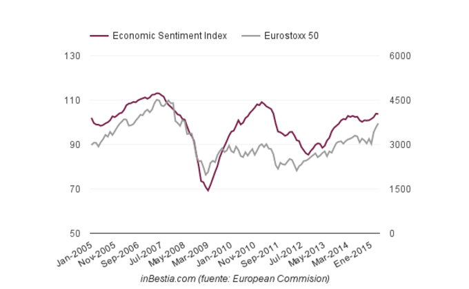 Eurozona: Índice Sentimiento Económico 103,7 Abril Según datos difundidos hoy por Eurostat, la agencia estadística de la Comisión Europea, el índice de sentimiento económico de la Eurozona, una encuesta realizada a... 29 de abril, 2015