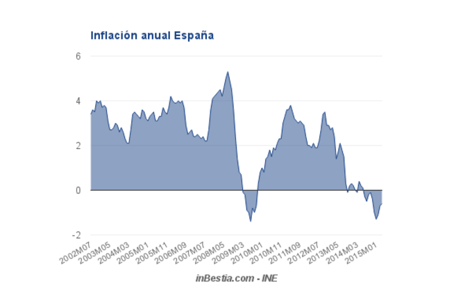 España: Inflación anual -0,6% La inflación anual en España durante le mes de abril fue del -0,6%, una décima superior a la observada en marzo. 30 de abril, 2015