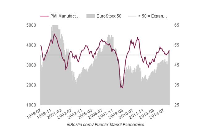 Eurozona: PMI Manufacturero 52 Abril El sector industrial de la Eurozona siguió creciendo en actividad económica. El 52% de los directivos de este sector informan que se produjo crecimiento en sus empresas en... 4 de mayo, 2015