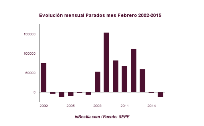 España: 13.538 parados menos en febrero Durante el pasado mes salieron de las listas del paro 13.538 personas, en lo que es el mejor mes de febrero de toda la serie histórica y un signo más de la fortaleza que... 3 de marzo, 2015