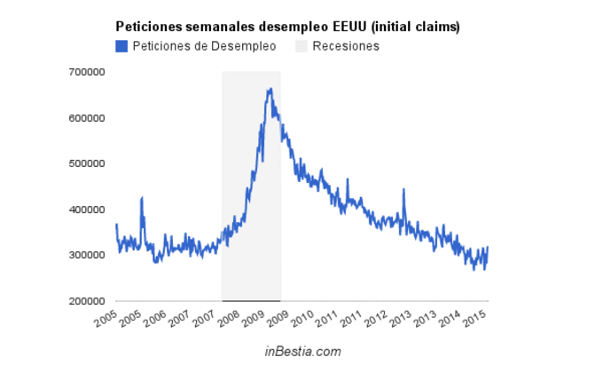 EEUU: 320.000 Peticiones de Paro Durante la pasada semana se solicitaron 320.000 seguros de desempleo en los EEUU (iniciales), 7.000 más que la semana previa y un 0,31% más que la misma semana del año... 5 de marzo, 2015
