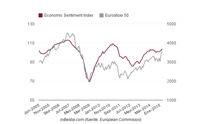 Eurozona: Índice Sentimiento Económico 103,9 Marzo Según datos difundidos hoy por Eurostat, la agencia estadística de la Comisión Europea, el índice de sentimiento económico de la eurozona, una encuesta realizada a... 30 de marzo, 2015