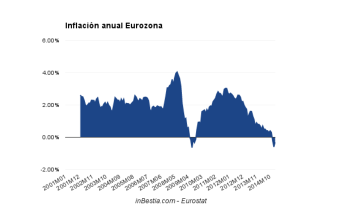 Eurozona: Inflación anual -0,3% La inflación anual negativa en la que está inmersa la Eurozona desde el mes de diciembre se moderó al pasar desde el -0,6% en enero al -0,3% en febrero, según datos... 3 de marzo, 2015