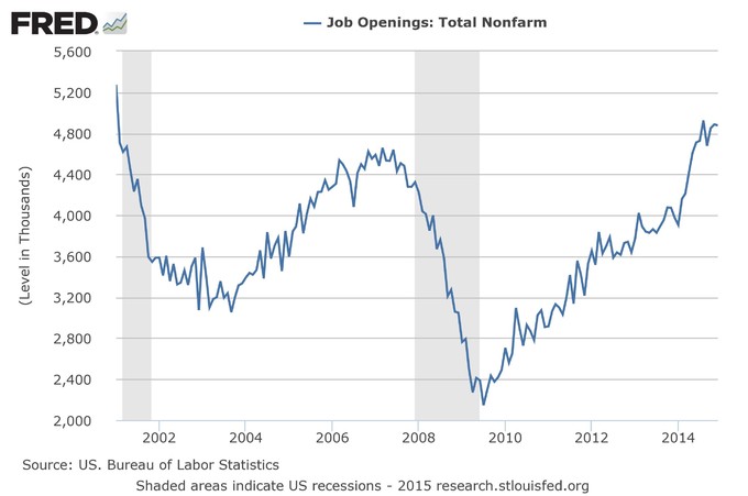 EEUU: 4.998.000 vacantes laborales en Enero Según datos conocidos hoy el número de puestos de trabajo vacantes que no pudieron cubrirse en el último mes (enero) en los Estados Unidos, fue de 4.998.000, la cifra... 10 de marzo, 2015