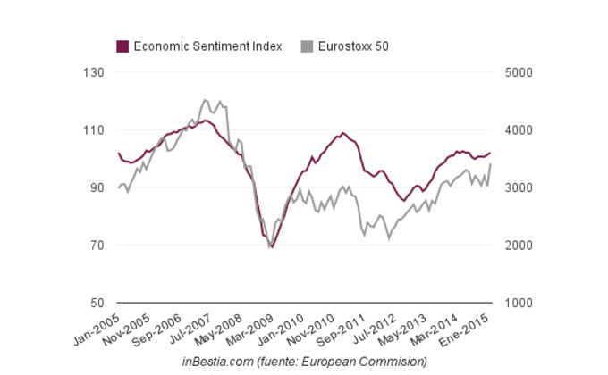 Eurozona: Índice Sentimiento Económico 102,1 Febrero Según datos difundidos por Eurostat, la agencia estadística de la Comisión Europea, el índice de sentimiento económico de la eurozona, una encuesta realizada a 125.000... 3 de marzo, 2015