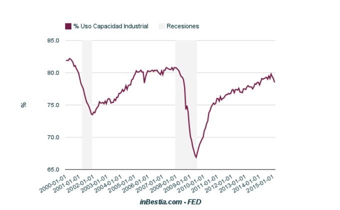 EEUU: Uso capacidad industrial 78,9% El uso del total de la capacidad industrial de los Estados Unidos declinó hasta el 78,9% en febrero, tres décimas menos que en enero y lejos de la expectativa media... 17 de marzo, 2015