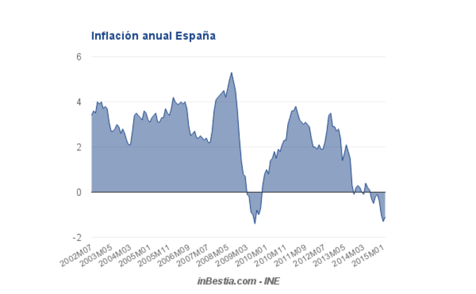 España: Inflación anual -0,7% Marzo Según ha adelantado hoy el Instituto Nacional de Estadística, la inflación interanual hasta marzo de este año fue del -0,7%, una contracción de los precios que se... 30 de marzo, 2015