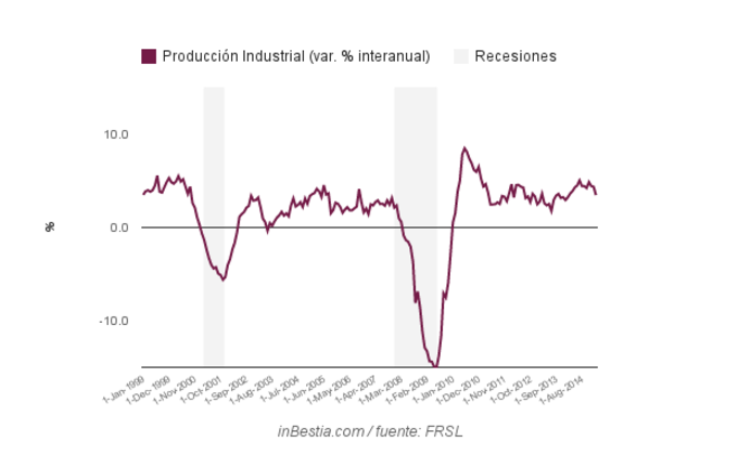 España: Producción Industrial +0,2% Enero La producción industrial, según el índice IPI elaborado por el Instituto Nacional de Estadística español, creció dos décimas en enero de 2015 con respecto a diciembre... 6 de marzo, 2015