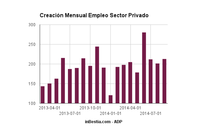 Estados Unidos creó 213.000 en el sector privado en septiembre Según datos ofrecidos por Automatic Data Processing y que refieren al mercado laboral del sector privado estadounidense, en septiembre se crearon 213.000 empleos, unos... 1 de octubre, 2014