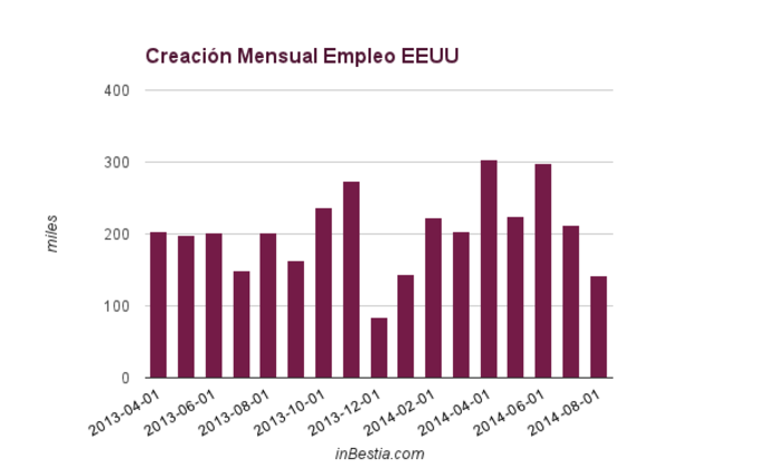 Estados Unidos creó menos empleos de lo esperado Nota negativa tras una semana de buenos datos. Según la administración norteamericana en agosto se crearon en EEUU 142.000 empleos, en lo que es una cifra... 5 de septiembre, 2014