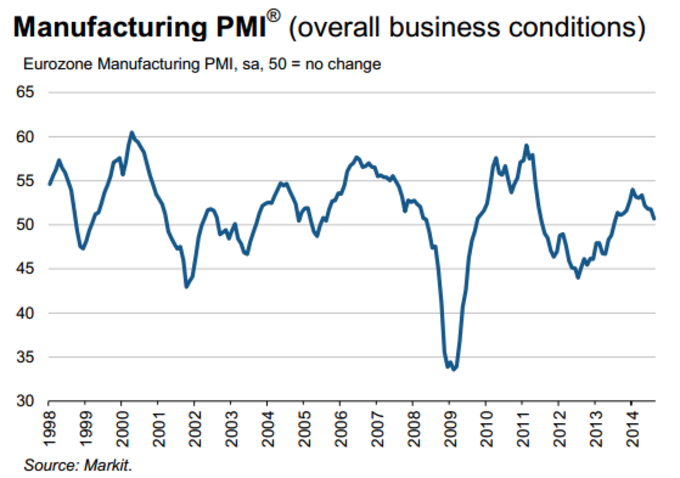 La industria europea se enfrió en agosto Según Markit Economics, la actividad industrial de la Eurozona siguió expandiéndose en agosto al reflejar el índice PMI Manufacturero una lectura de... 1 de septiembre, 2014