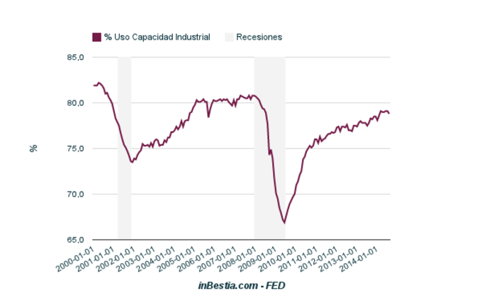 EEUU: El uso de la capacidad industrial cae al 78,8% El uso del total de la capacidad industrial de Estados Unidos descendió en agosto hasta el 78,8% desde el 79,1% en julio en lo que es la lectura más baja desde febrero de... 15 de septiembre, 2014