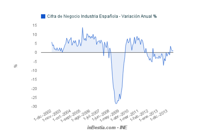 La cifra de negocio industrial en España se enfría Según datos publicados hoy por el Instituto Nacional de Estadística, la cifra de negocio en el sector industrial español se contrajo el 0,5% en julio con respecto a junio... 18 de septiembre, 2014