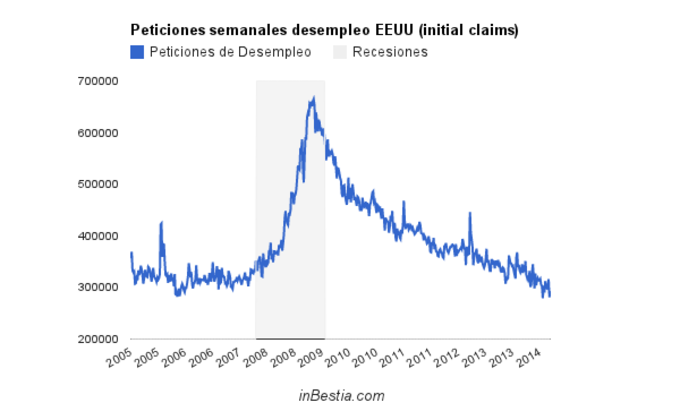 Las peticiones de paro en EEUU siguen descendiendo Durante la pasada semana se registraron 298.000 peticiones de paro en EEUU, una cifra en el rango bajo del último año o un 9,15% inferior lo cual es propio de una... 28 de agosto, 2014