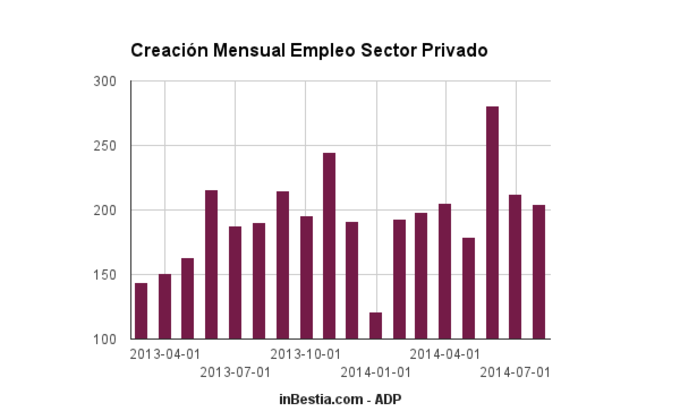 Estados Unidos creó 204.000 empleos en agosto Según informa Automatic Data Processing, en el mes de agosto se crearon 204.000 puestos de trabajo en el sector privado norteamericano. Se trata del tercer mes consecutivo... 4 de septiembre, 2014