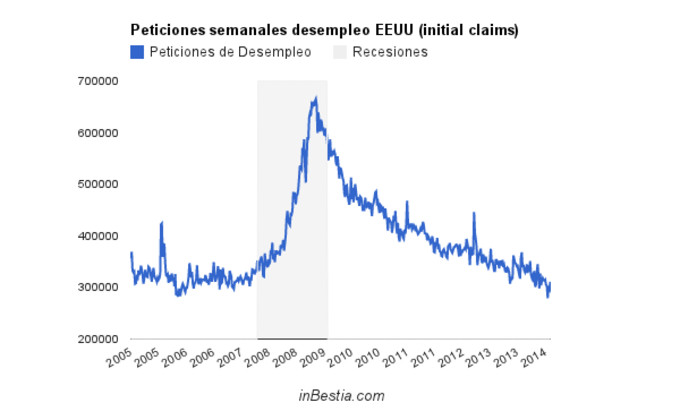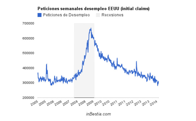 Las peticiones de paro siguen descendiendo en EEUU El número de peticiones de los seguros de desempleo en EEUU durante la pasada semana fue de 302.000, descendiendo de los 305.000 de la semana anterior. Esta cifra se... 17 de julio, 2014