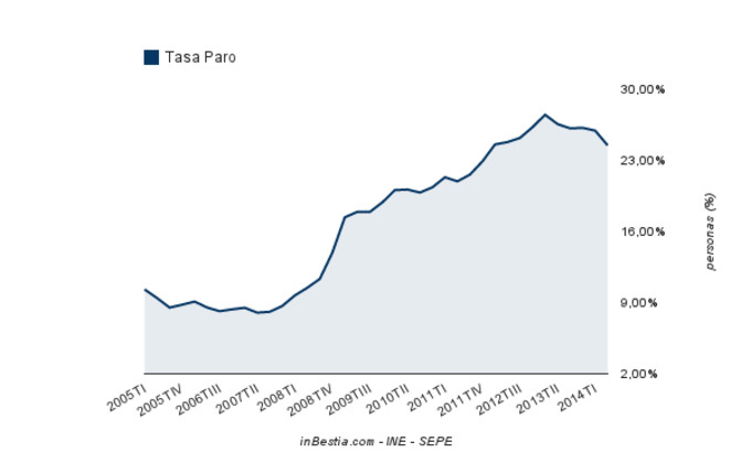 Tasa Paro España 24,47% Según publicó hoy el Instituto Nacional de Estadística la tasa de paro en España se redujo en el segundo trimestre de 2014 hasta el 24,47%. 24 de julio, 2014