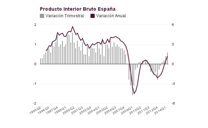 El PIB español creció 1,2% en el último año Según datos publicados hoy por el Instituto Nacional de Estadísticas, el productos interior bruto español creció un 1,2% entre junio de 2013 y junio de 2014. Se trata de... 30 de julio, 2014