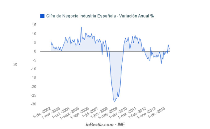 La cifra de negocio industrial cayó en mayo -0,7% Según publica hoy el Instituto Nacional de Estadística, la cifra de negocio total de la industria española declinó siete décima en mayo con respecto abril. La... 17 de julio, 2014