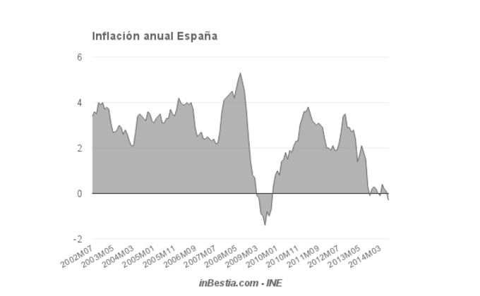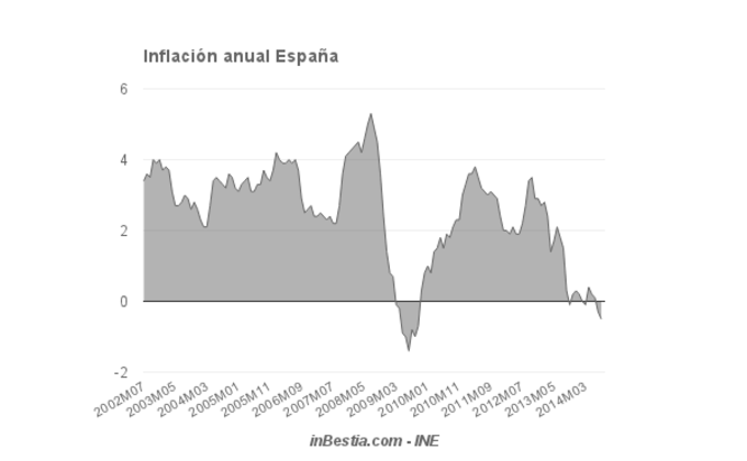 La inflación anual española retrocede hasta el -0,5% Según datos publicados hoy por el Instituto Nacional de Estadística, la inflación anual en España hasta el mes de agosto fue negativa con una tasa del -0,5%, una cifra... 28 de agosto, 2014