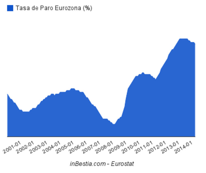 La tasa de paro de la zona euro baja hasta el 11,7% Según ha informado hoy Eurostat, la agencia estadística de la Comisión Europea, la tasa de paro habría descendido una décima en el mes de abril con respecto a marzo de... 3 de junio, 2014