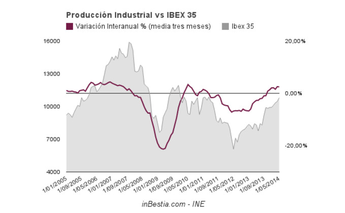 La producción española descendió en mayo Según informa hoy el Instituto Nacional de Estadística, la producción industrial medida por el índice de producción industrial del INE descendió en mayo 7 décimas con... 7 de julio, 2014