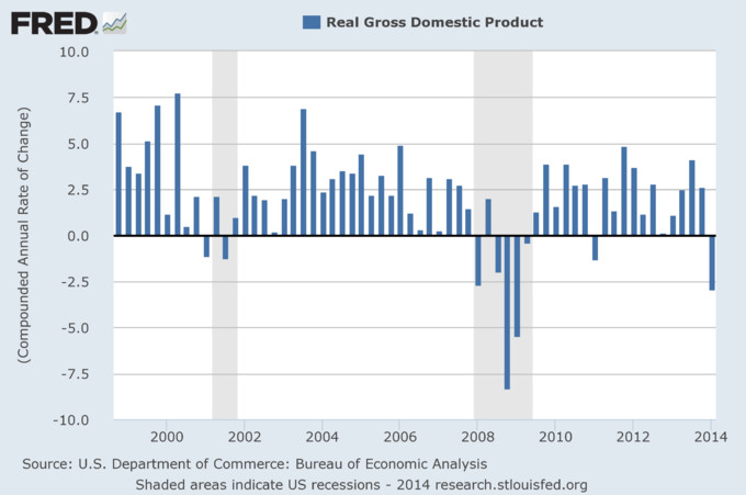 El PIB T1 2014 de EEUU revisado fuertemente a la baja: -2,9% Hoy se ha hecho pública la tercera revisión del producto interior bruto de Estados Unidos durante el primer trimestre de este año sorprendiendo a todos los analistas con... 25 de junio, 2014