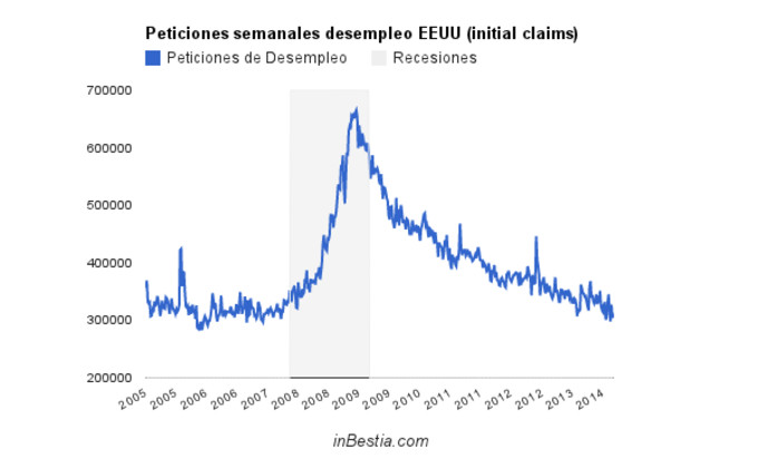 Las peticiones de paro en EEUU siguen en bajos niveles El número de peticiones del seguro de desempleo en EEUU durante la última semana descendió desde las 318.000 hasta las 312.000, una cifra en el rango bajo de los últimos... 19 de junio, 2014