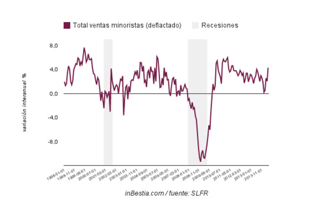 Las ventas minoristas se aceleran en Estados Unidos al mayor ritmo en 3 años Aunque el dato de crecimiento mensual de las ventas minoristas en mayo ha sido menor del esperado (0,3% Vs 0,7%) el mes de abril ha sido revisado al alza y donde... 12 de junio, 2014