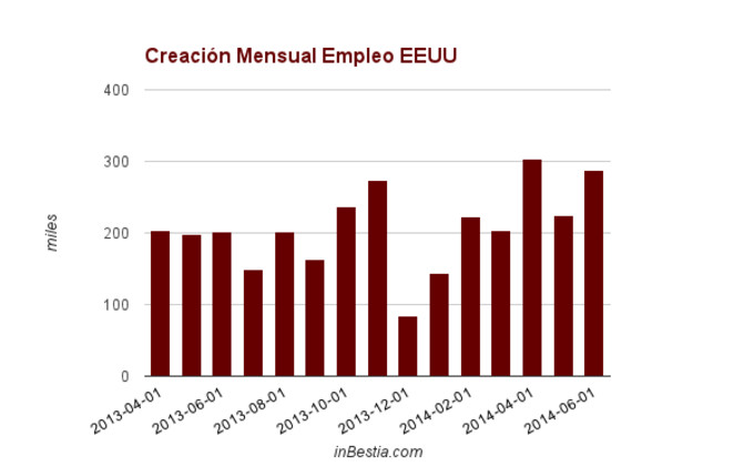 EEUU creó 288.000 puestos de trabajo en junio Según informó hoy tarde el Departamento de Trabajo de EEUU, en junio se crearon 288.000 puestos de trabajo en los sectores público y privado. Se trata de una lectura en... 3 de julio, 2014